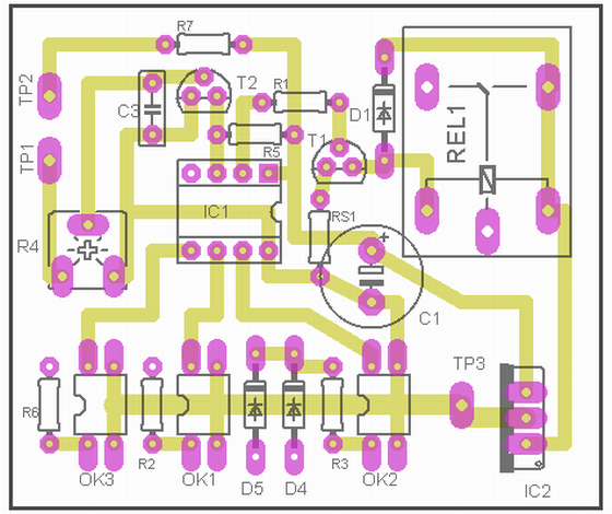 Cablajul imprimant si dispunerea componentelor (traseele sunt vazute prin transparenta)