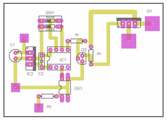 Cablajul imprimant si dispunerea componentelor (traseele sunt vazute prin transparenta)