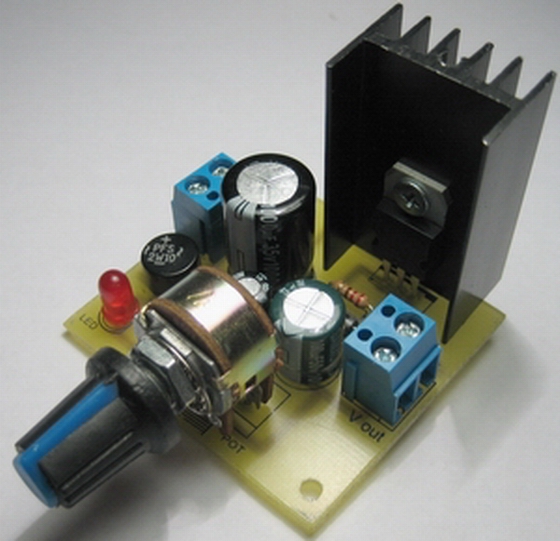 Sursa de tensiune reglabila are ca componenta de baza circuitul LM 317 īn capsula TO-220, un regulator de tensiune pozitiva cu trei pini. De asemenea, circuitul beneficiaza de protectie la suprasarcina si la scurtcircuit. Sursa furnizeaza la iesire o tensiune ce poate fi reglata īntre 1,5V si 30V, din potentiometru liniar de 5K (POT), iar la intrare tensiunea nu trebuie sa depaseste 24V AC sau 35V DC. Pentru valori mai mici ale tensiunii de intrare se va lua īn calcul ca tensiunea de intrare sa fie mai mare cu 2,5V decāt tensiunea necesara la iesire. Curentul de iesire maxim suportat de LM 317 este de 1,5A. LM 317 se monteaza pe un radiator, care īnsa poate lipsi atunci cānd consumul nu depaseste 60 mA. Pentru un consum mai mare de 1,5A, se poate utiliza circuitul LM 338T ce suporta un curent de iesire de 5A.