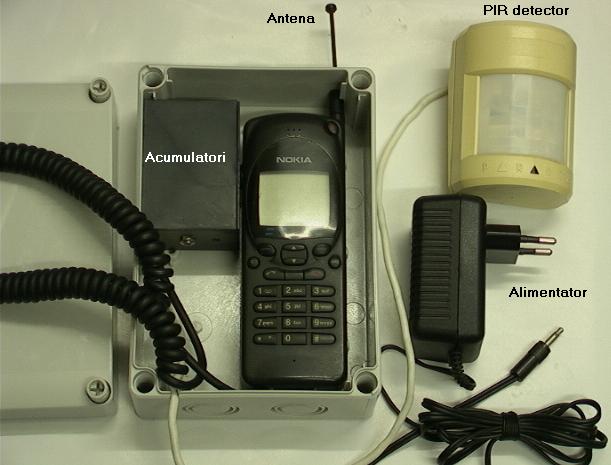 Sistemul se conecteaza cu un detector de miscare PIR sau o pereche de contacte magnetice. Cānd detectorul de miscare PIR detecteaza prezenta unei persoane in incaperea supravegheata sau atunci cand cineva deschide usa imobilului supravegheat, actionand perechea de contacte magnetice montate deasupra usii, sistemul apeleaza imediat un nr. de telefon. Dupa fiecare apelare, sistemul de supraveghere trebuie armat, pentru a putea initia un alt apel. Armarea se face prin initierea unui apel scurt (BIP) catre sistem, de la orice telefon.