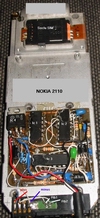 Principala componenta a sistemului o constitue telefonul Nokia 2110. Tastatura telefonului este conectata la un comutator electronic. Cand sistemul este armat, comutatorul electronic actioneaza electric tastele "NO" "C" si "7", atunci când se deschid contactele normal închise de la detectorul PIR, realizandu-se astfel apelarea telefonica. Comutatorul este conectat in paralel cu cele trei taste: "NO" "C" si "7"T. Tastele sunt actionate prin închiderea circuitul electric al tastelor "NO" "C" si "7", in urmatoarea ordine: tasta “NO“ (respige un posibil apel), urmeaza tasta “C” (sterge ecranul), iar ultima tasta actionata este tasta”7” (are ca efect apelarea nr. memorat in agenda telefonica, la apeluri rapide, pentru tasta 7 ). Durata cat o tasta este actionata este de o secunda. Armarea se produce cand telefonul Nokia 2110 receptioneaza un apel scurt (BIP), avand ca efect aprinderea LED-ul de apel al acestuia, rezultand astfel un nivel de tensiune ce va fi integrat de comutatorul electronic pentru a se realiza armarea sistemului.