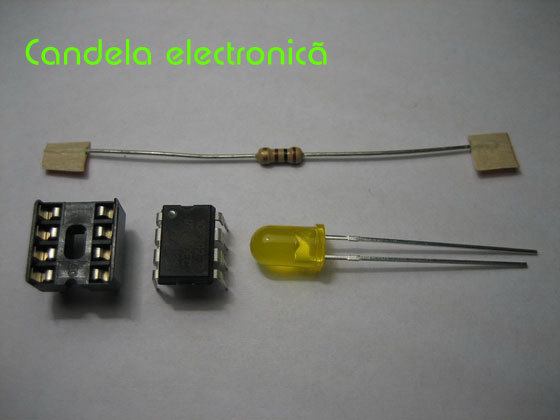 Circuitul imita flacara produsa de o candela si este realizat cu microcontrolerul PIC 10F202 si un LED galben. Datorita numarului redus de componente nu este nevoie de cablaj.