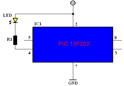 IC1 = microcontroler PIC 10F202