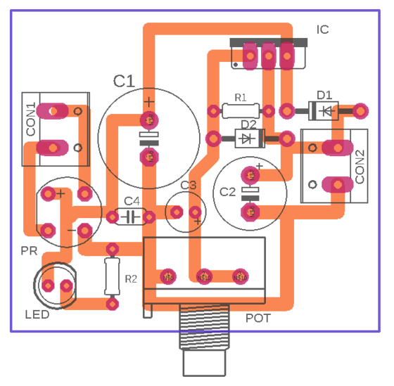 Cablajul imprimant si dispunerea componentelor (traseele sunt vazute prin transparenta)