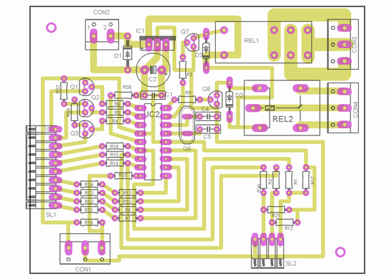 Cablajul imprimant si dispunerea componentelor (traseele sunt vazute prin transparenta)
